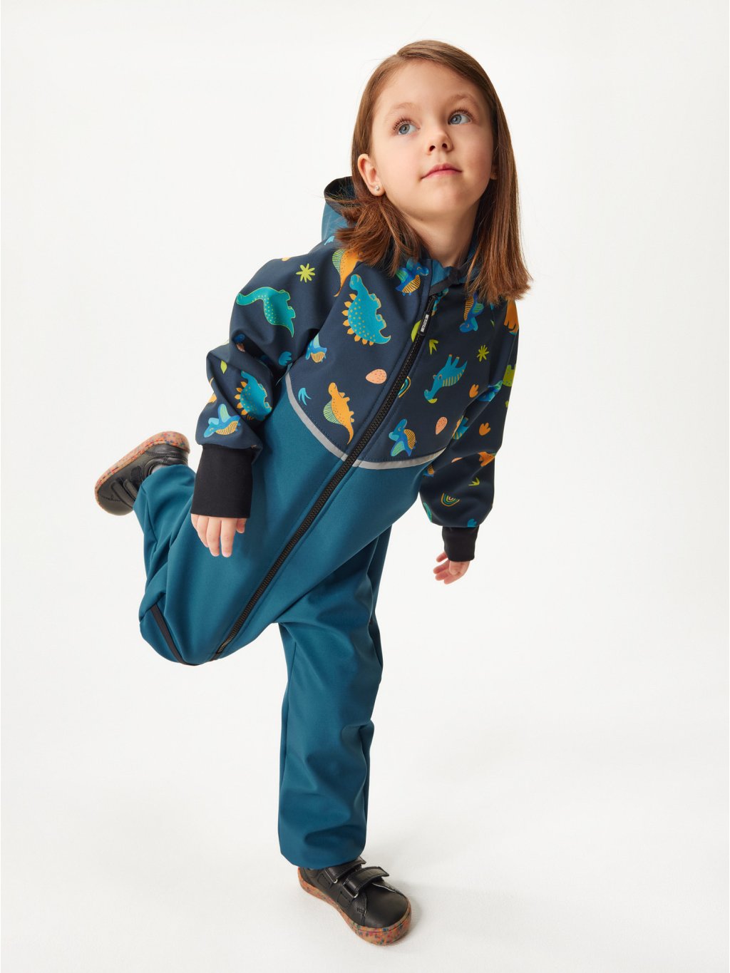 Combinaison enfant en softshell doublé polaire Mini, Cobalt, Dinosaures