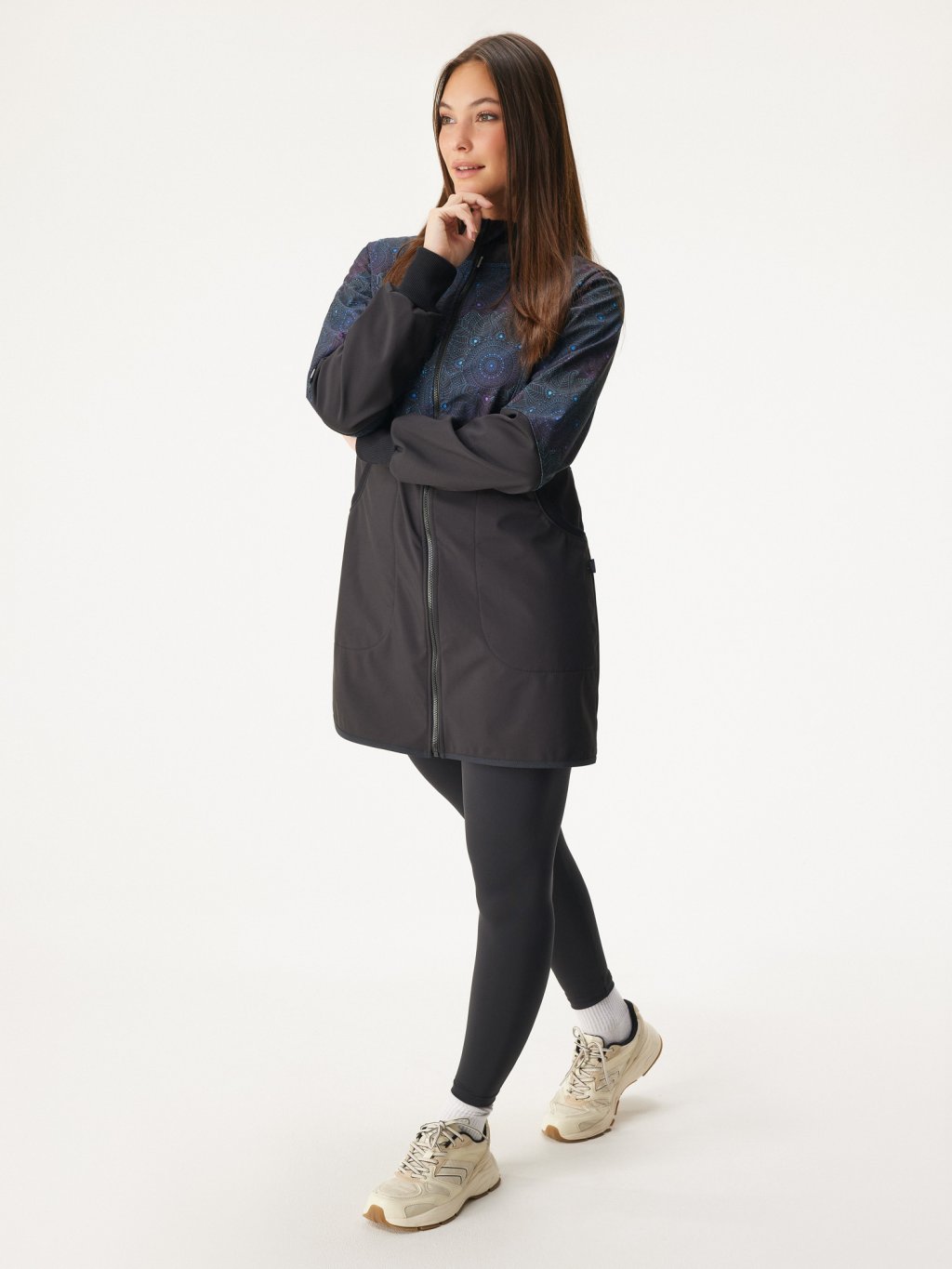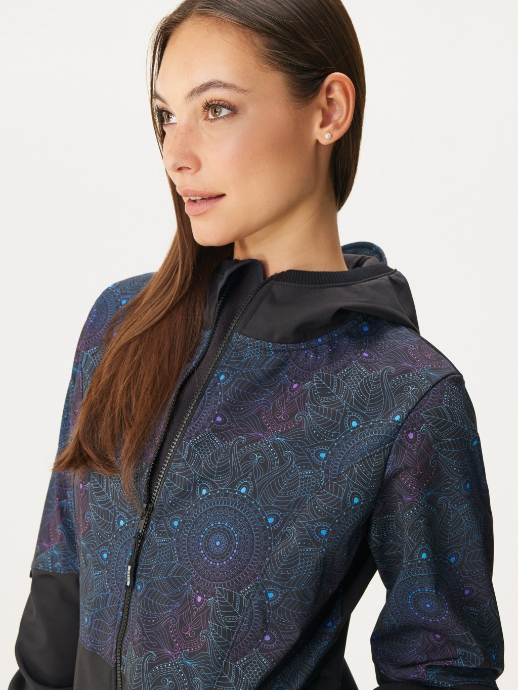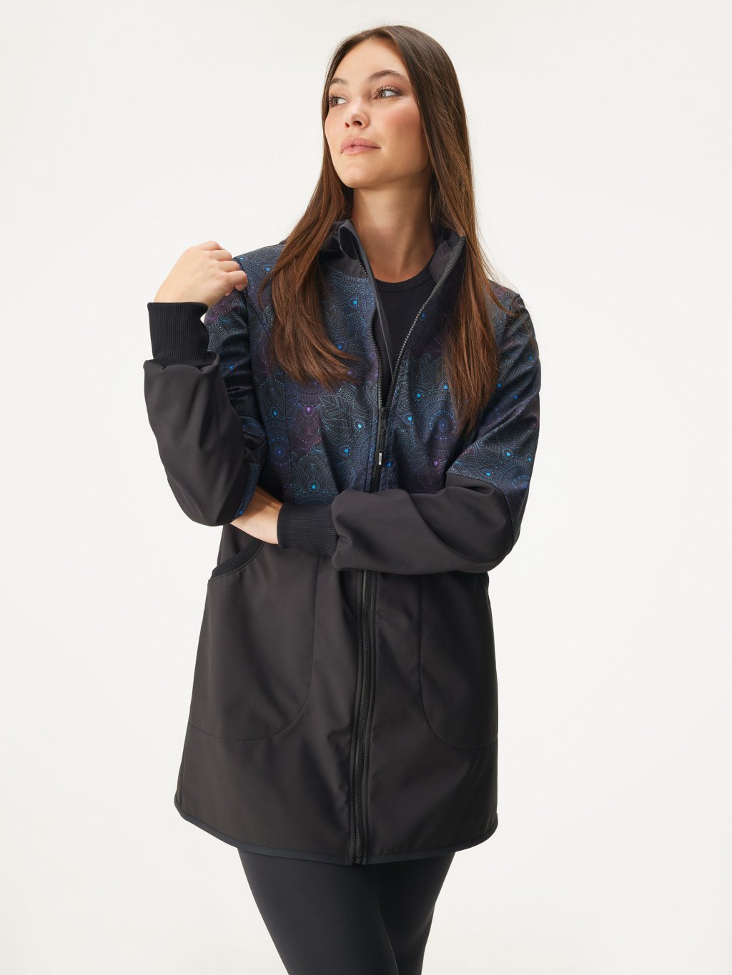 Manteau femme softshell doublé polaire Street, Noir, Mandala foncé