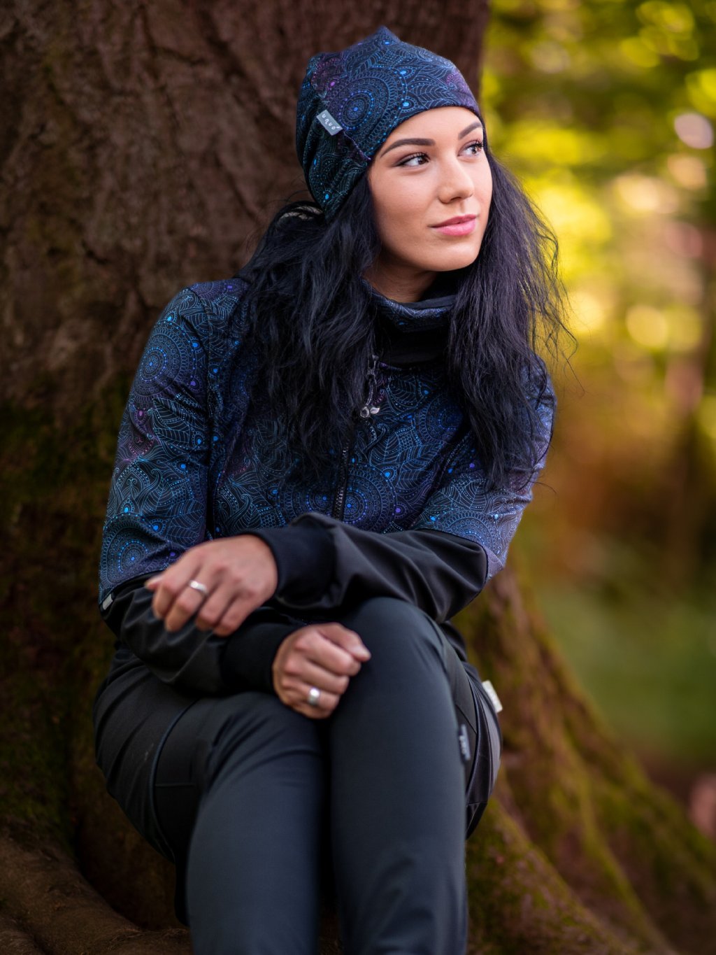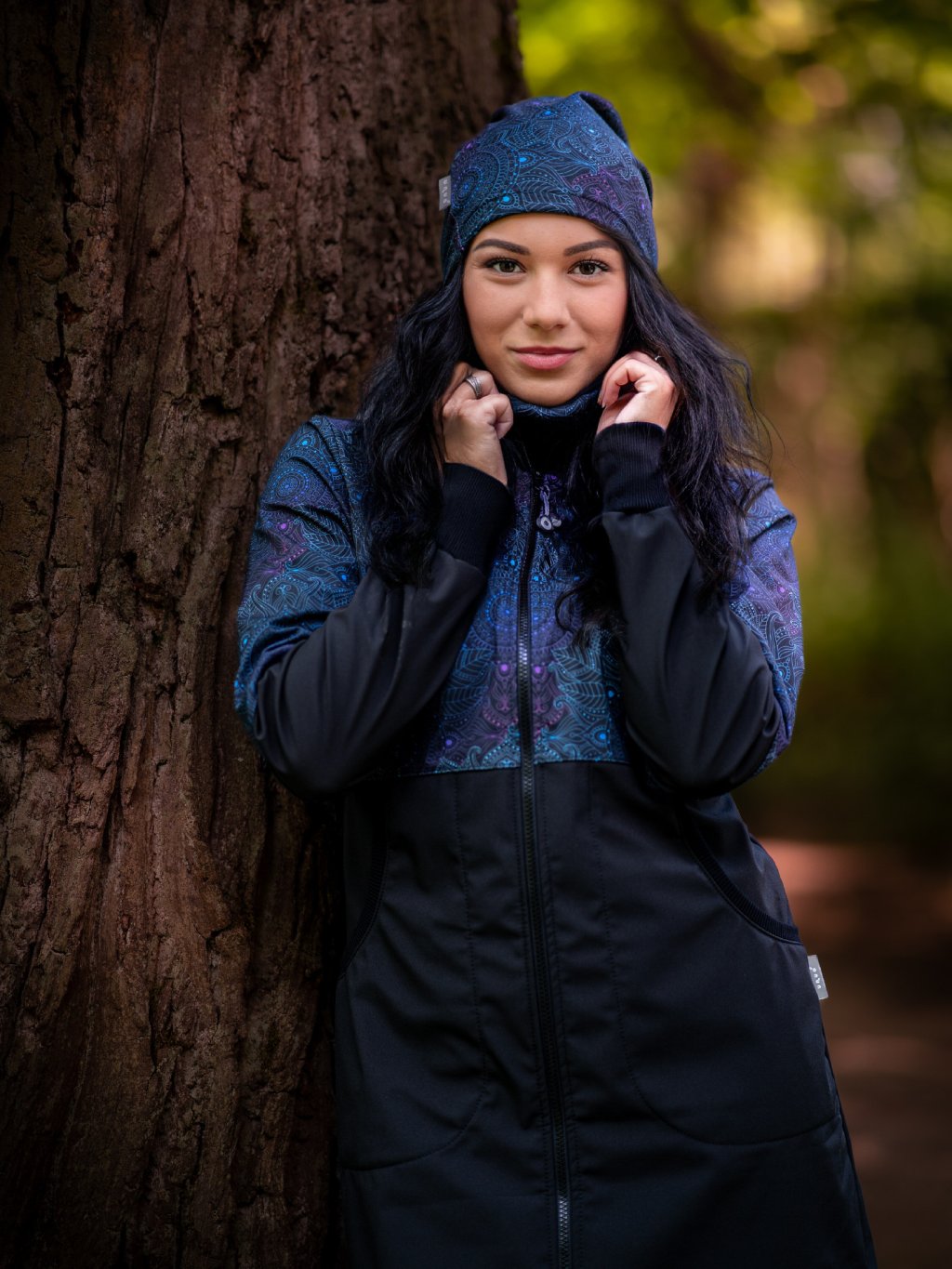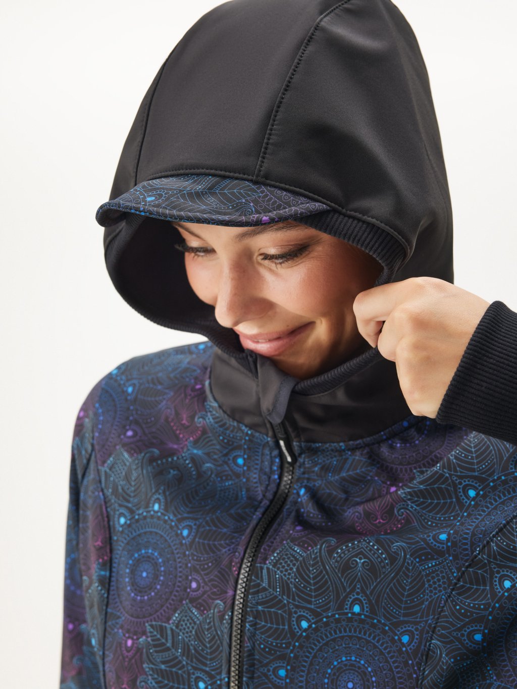 Manteau femme softshell doublé polaire Street, Noir, Mandala foncé