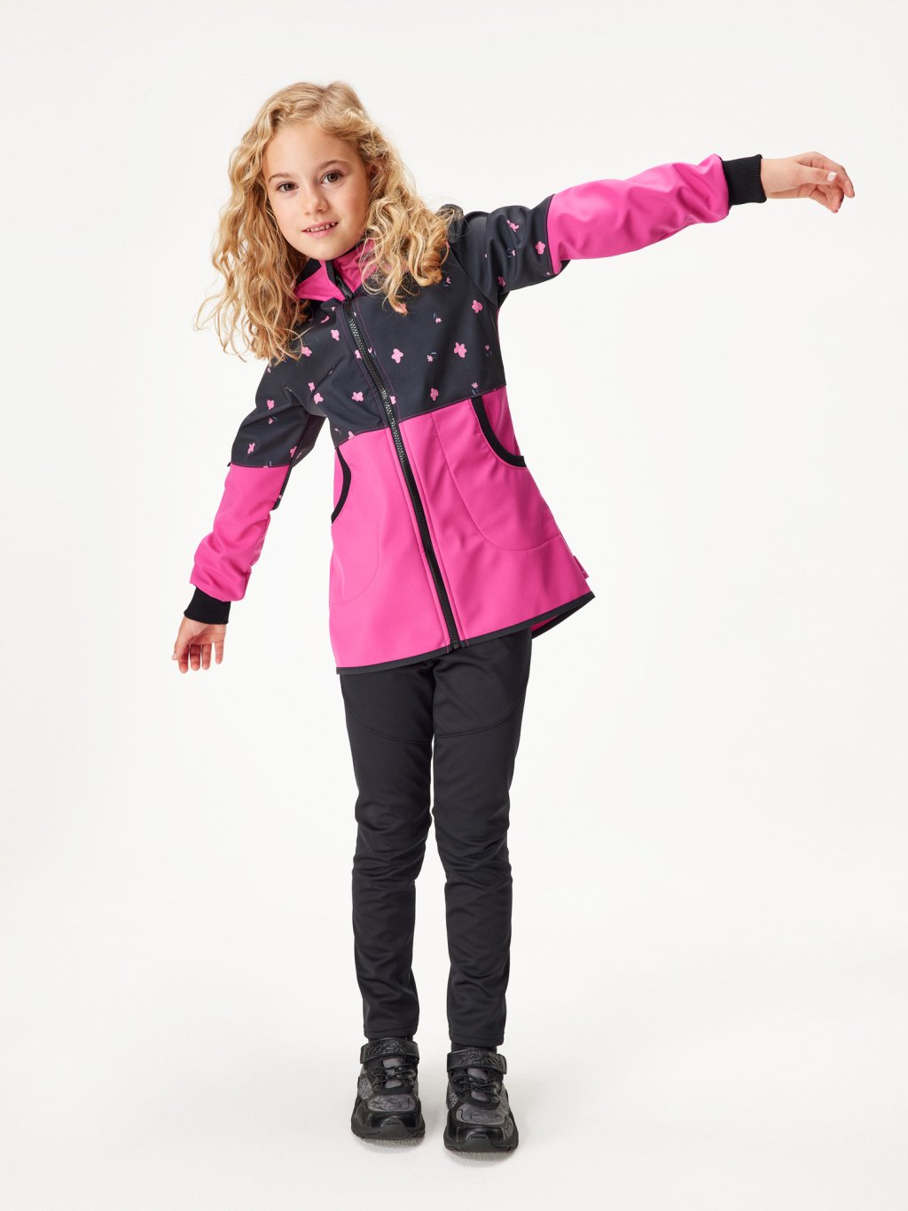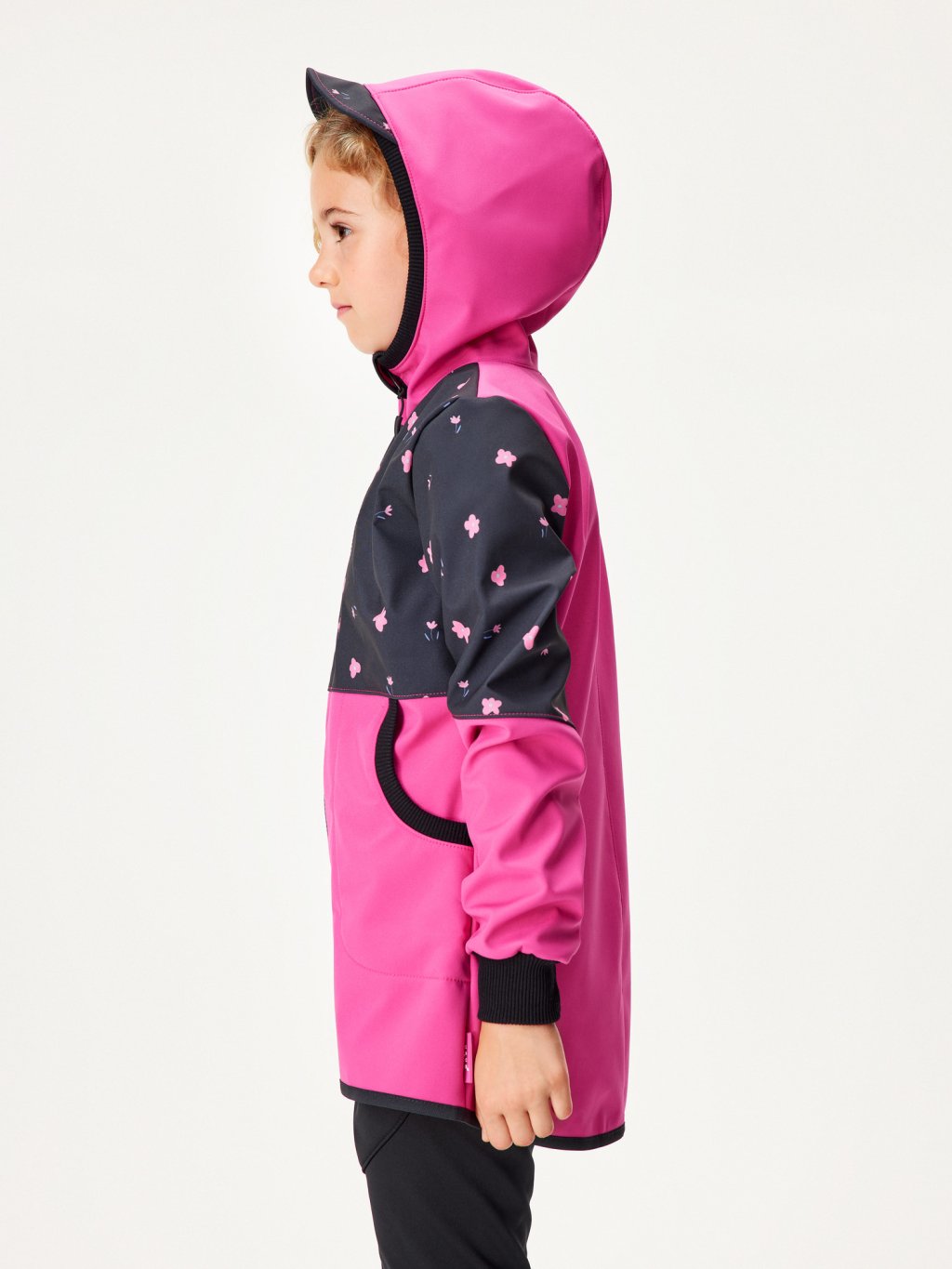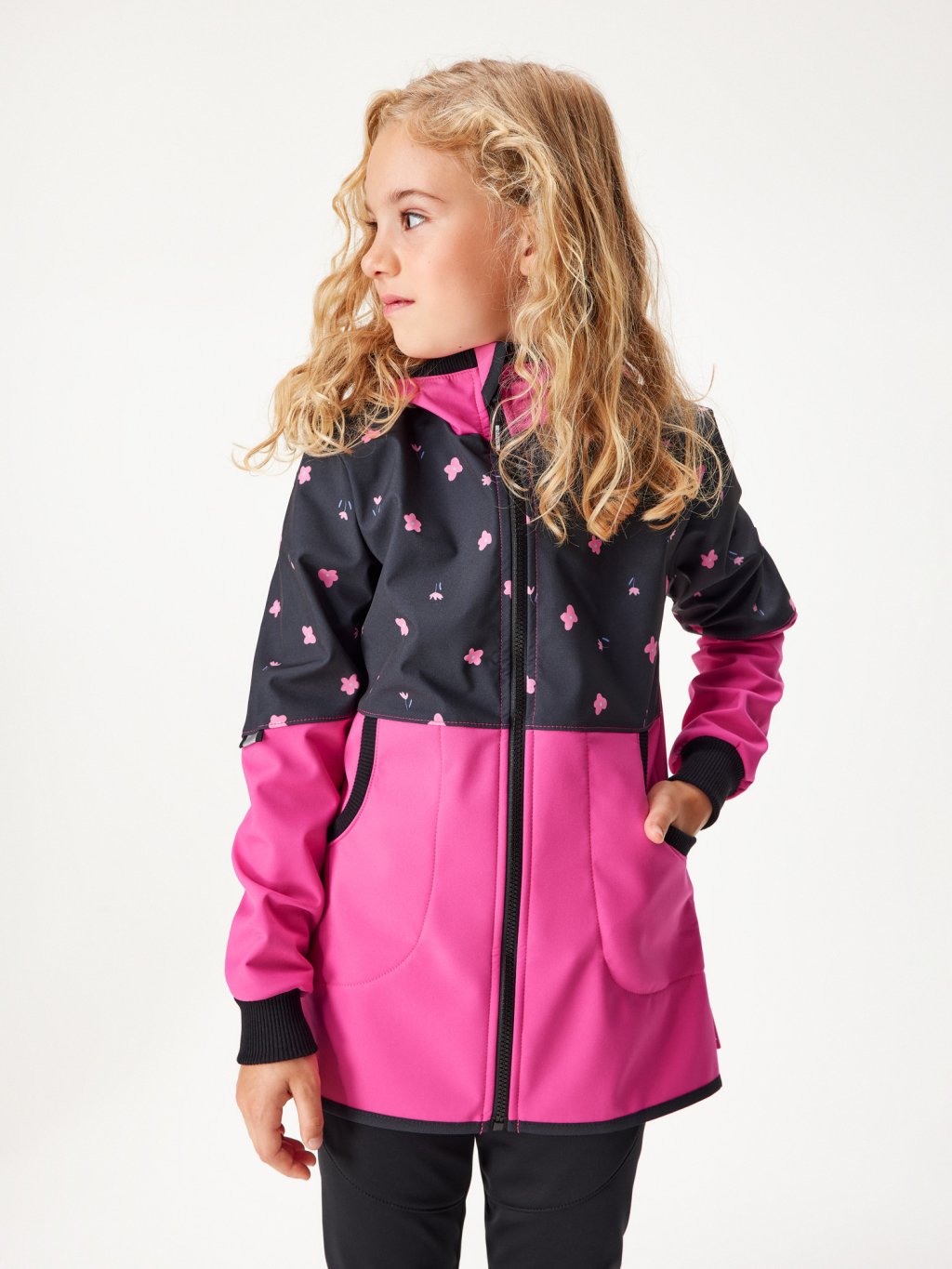 Manteau fille softshell doublé polaire Street, Fuchsia, Fleurs