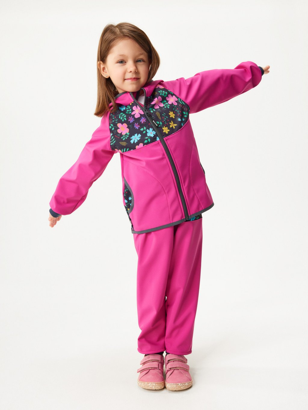 Pantalon bébé en softshell doublé polaire Basic, Fuchsia, Fleurs