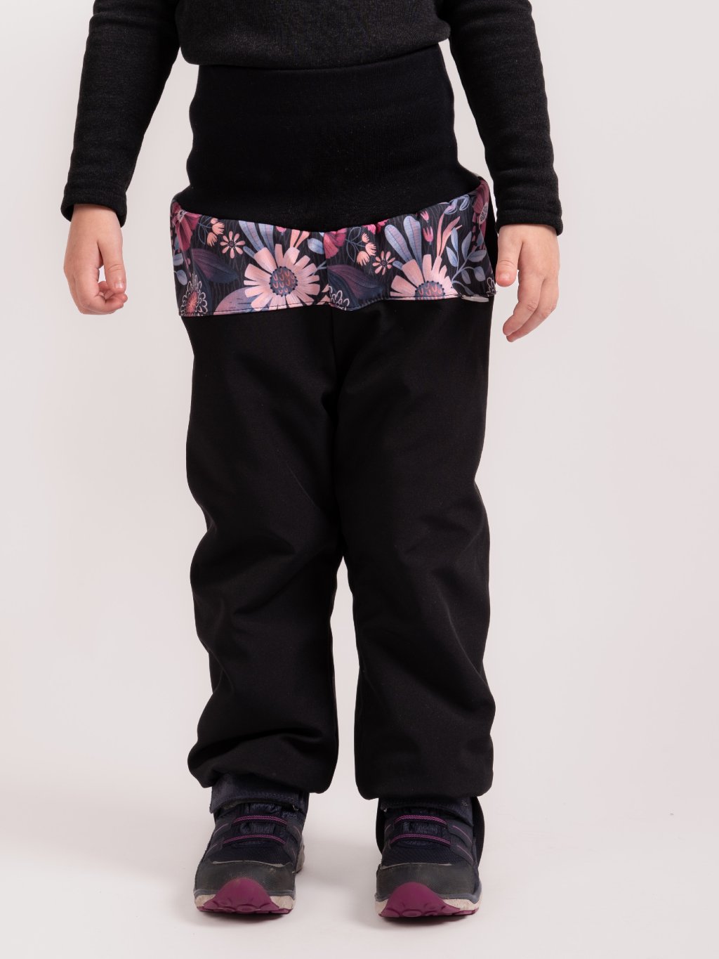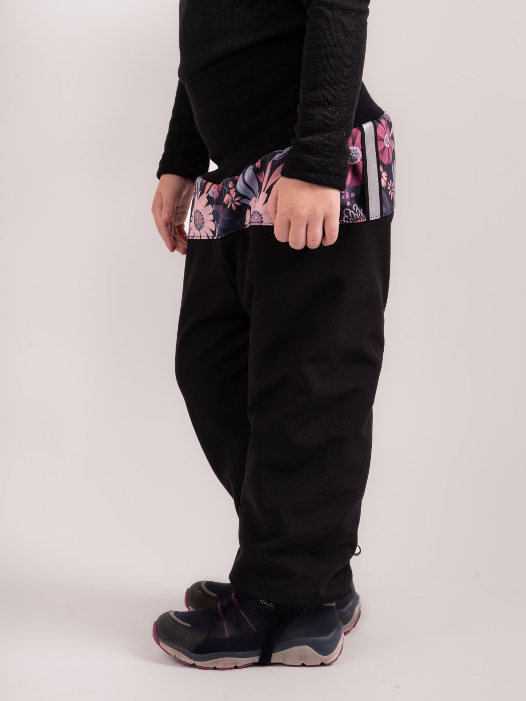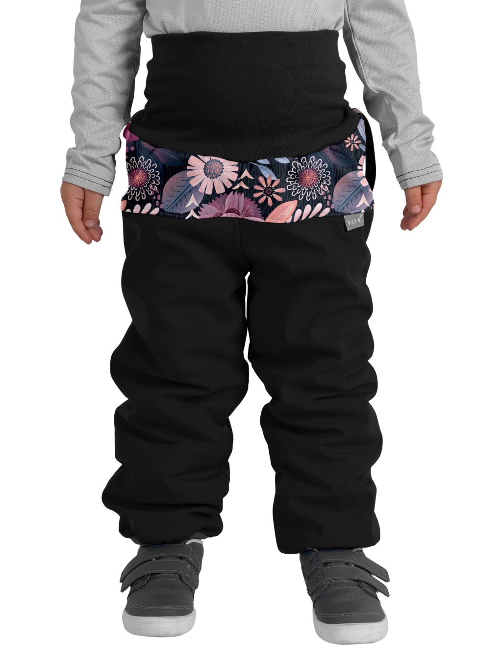 Pantalon bébé en softshell doublé sherpa Plus, Noir, Fleurs magiques