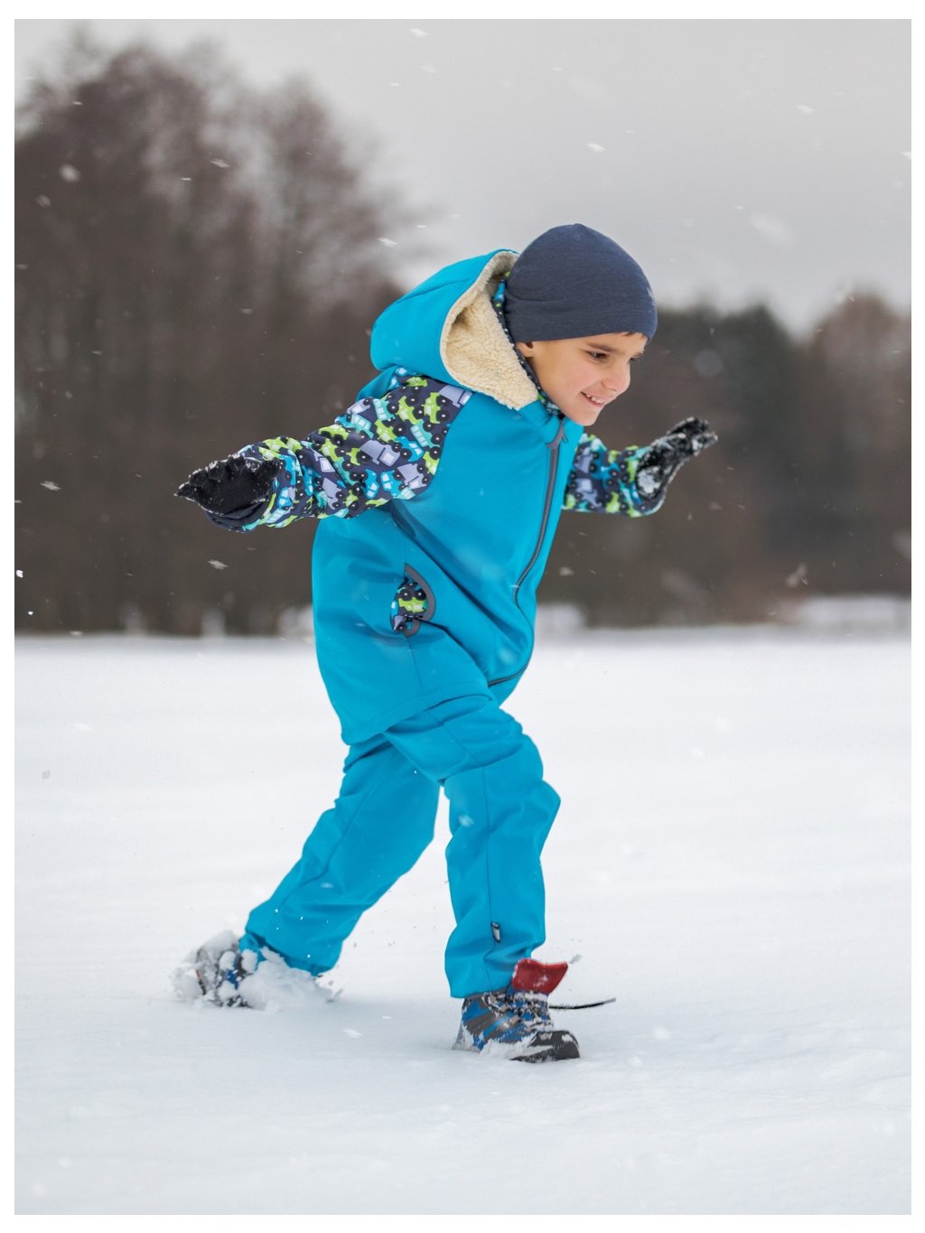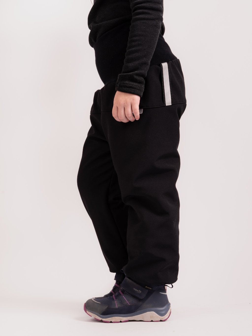 Les vetements chauds softshell pour enfants, rsistants a l'eau (dans presque toutes les conditions), protegeront votre progniture pendant les plaisirs les plus sauvages de l'hiver. Grce a la parfaite barriere de neige au niveau des jambes, les pieds resteront au sec meme dans les congeres de l'Himalaya. Nous avons quip le pantalon d'un systeme spcial a double lastique, qui garantit que la neige ne pnetre tout simplement pas dans le pantalon. Lors de la pratique de la luge, le pantalon monte volontiers au-dessus des chevilles. C'est pourquoi un lastique spcial a t plac dans la jambe pour attacher littralement le pantalon aux bottes. Pour une dure de vie plus longue, vous pouvez l'enfiler sur une chaussette et le mettre dans vos bottes.