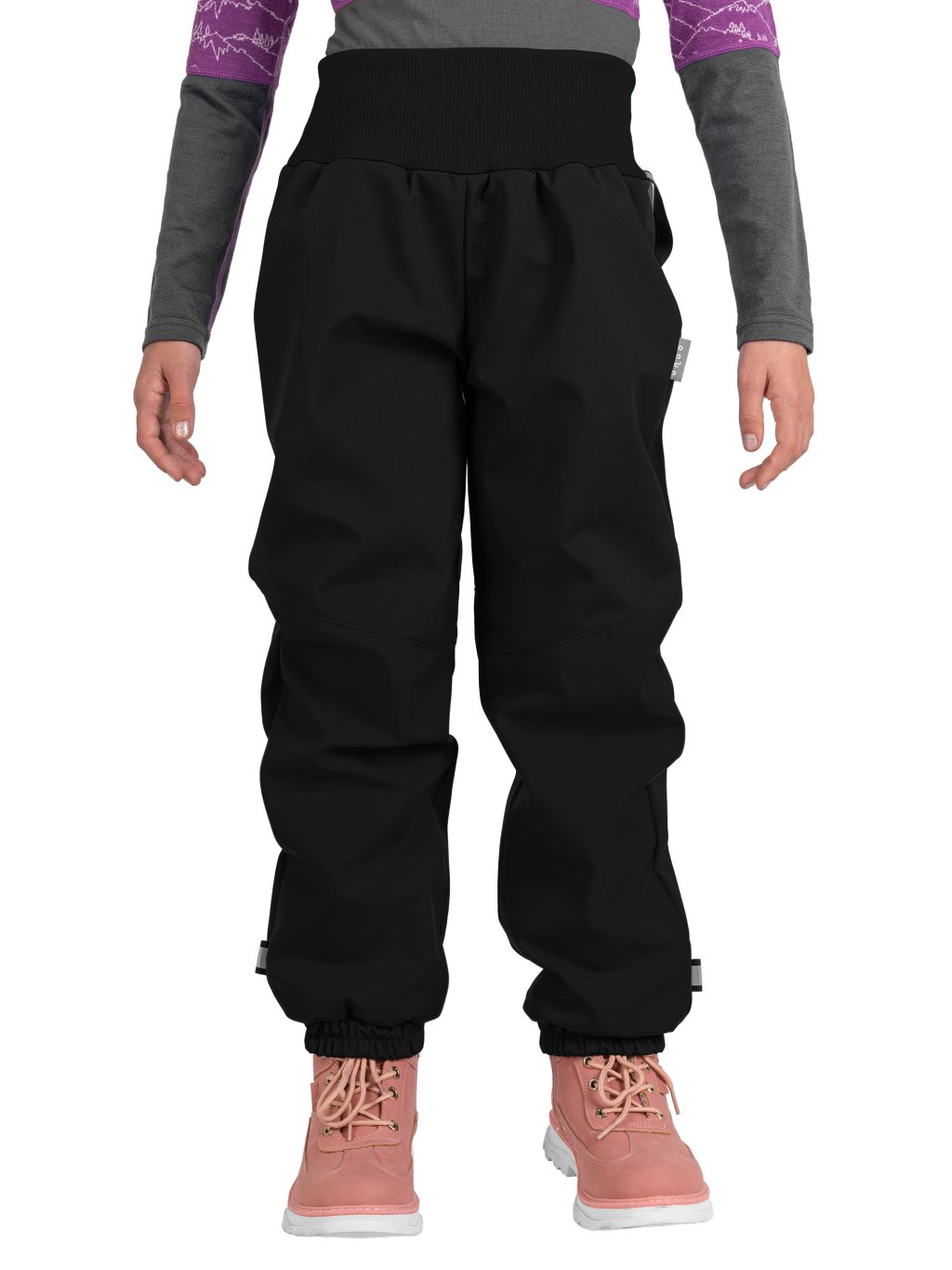 Pantalon enfant softshell doublé polaire Plus, Noir, Fleurs magiques