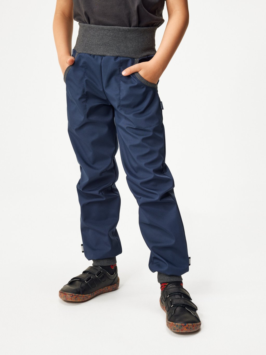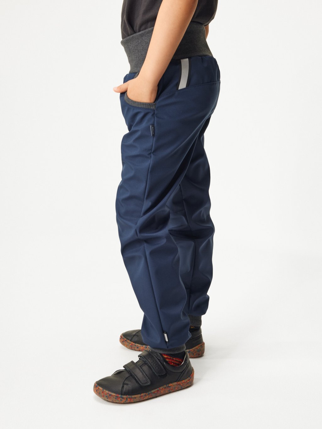 Pantalon enfant softshell fin Street, Bleu foncé-noir
