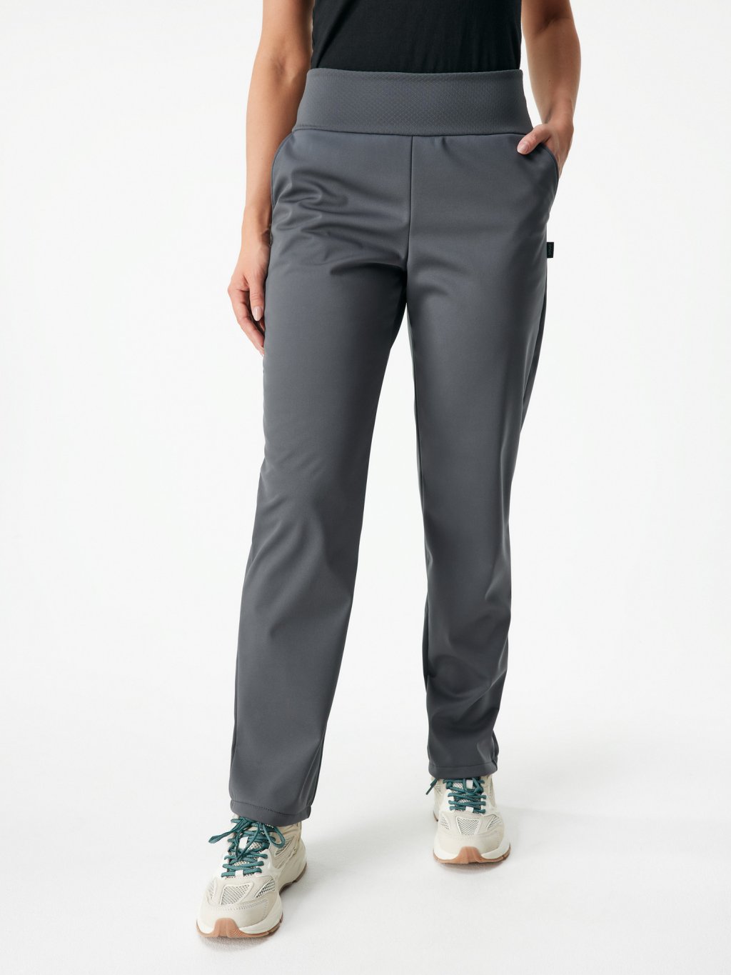 Pantalon femme softshell stretch doublé polaire, Gris foncé