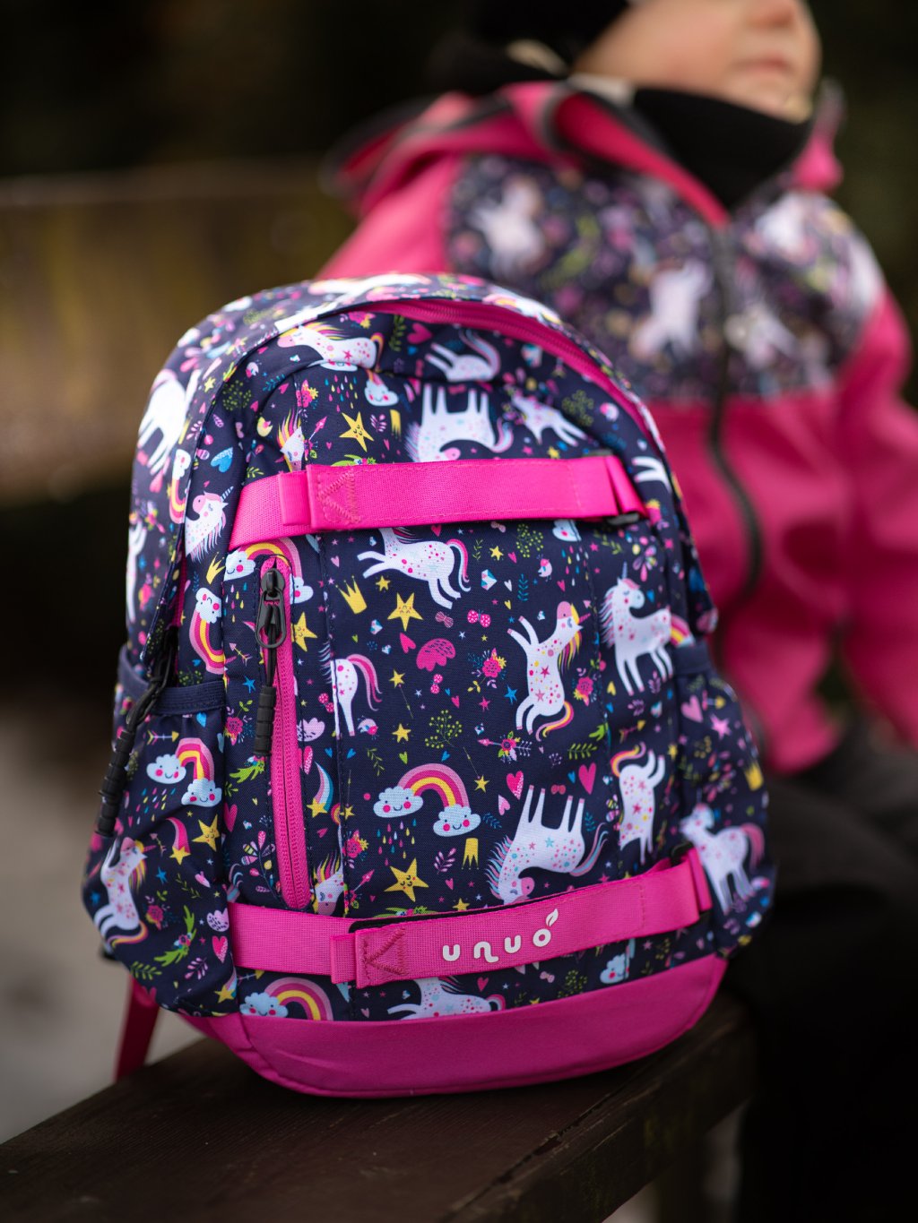 Le sac a dos est dot d'un dos rembourr et de bretelles rglables, ce qui garantit un port confortable, tandis que la ceinture thoracique offre un soutien et une stabilit supplmentaires lors du transport de tous les lments essentiels. A l'intrieur, vous trouverez une poche spacieuse pour les livres, les collations et les jouets prfrs, tandis qu'une petite poche zippe a l'extrieur permet d'accder rapidement a tous les lments essentiels. La poche latrale pour la bouteille permettra a vos enfants de boire suffisamment tout au long de la journe.