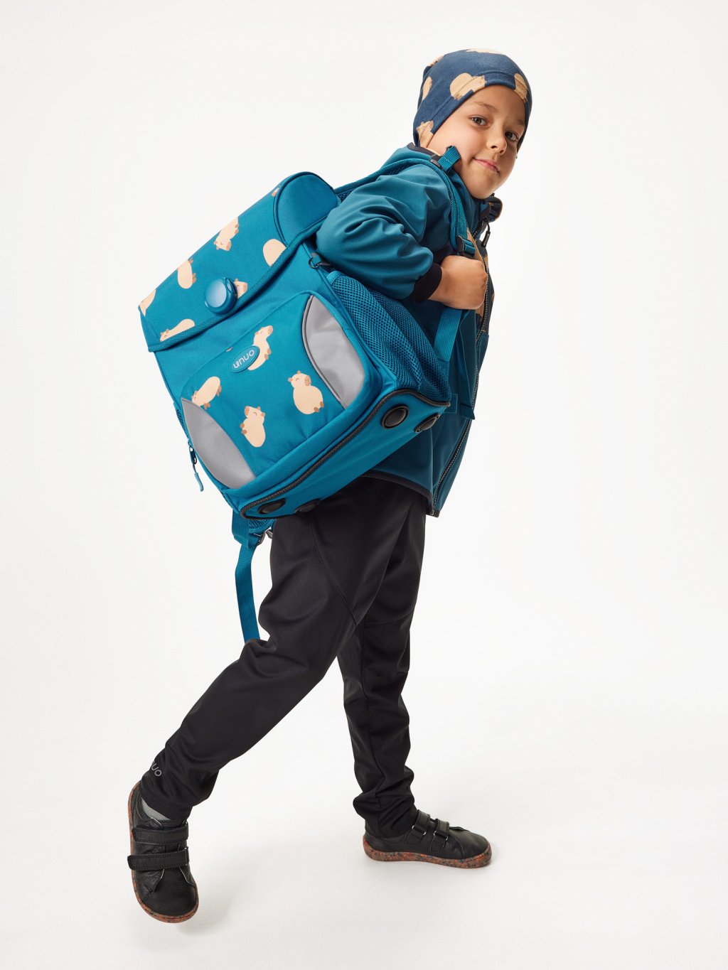 La sécurité est assurée par des éléments réfléchissants sur tous les côtés - sur la poche avant, les côtés, les bretelles, le logo et les fermetures à glissière. Le dos et les bretelles matelassés garantissent un port confortable, tandis que la ceinture thoracique et la ceinture ventrale permettent de répartir le poids uniformément et d'assurer la stabilité lors de la marche. Une sangle pratique permet également de le suspendre. Ce sac à dos est le compagnon idéal des jeunes écoliers qui souhaitent disposer d'un accessoire à la fois élégant et fonctionnel pour tous les jours. Le sac à dos est conçu en République tchèque et cousu par un atelier de couture étranger.