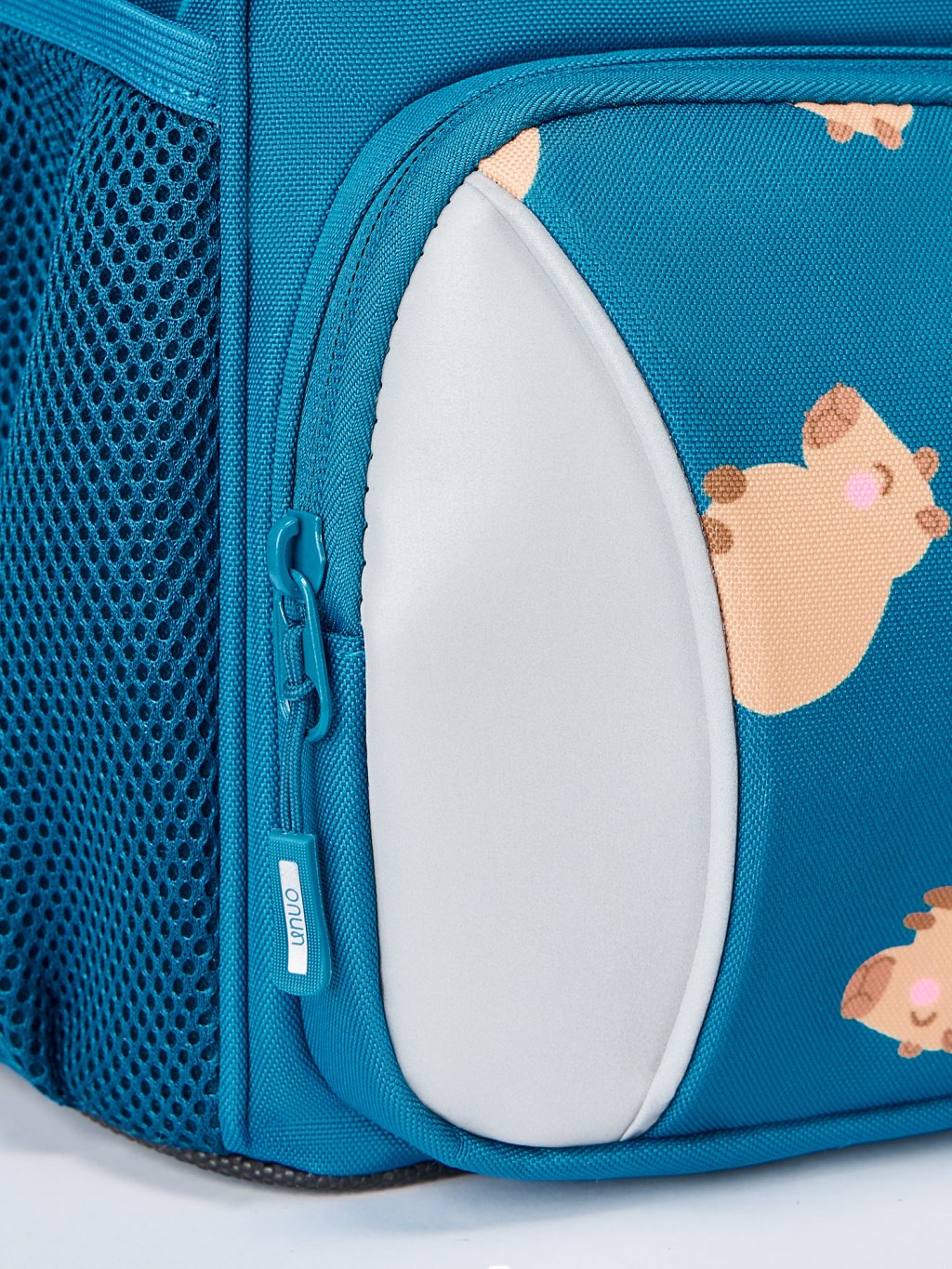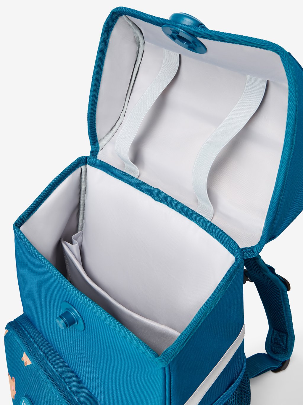 Ce sac à dos scolaire au design ludique offre beaucoup d'espace et un aménagement intérieur bien pensé. La grande poche comporte un compartiment séparé pour une meilleure organisation des manuels et des cahiers, et le couvercle dissimule des élastiques pratiques pour que tout ce qui est important ait sa place. La poche frontale est parfaite pour une boîte à en-cas, et un espace est prévu sur le côté pour une bouteille de boisson.