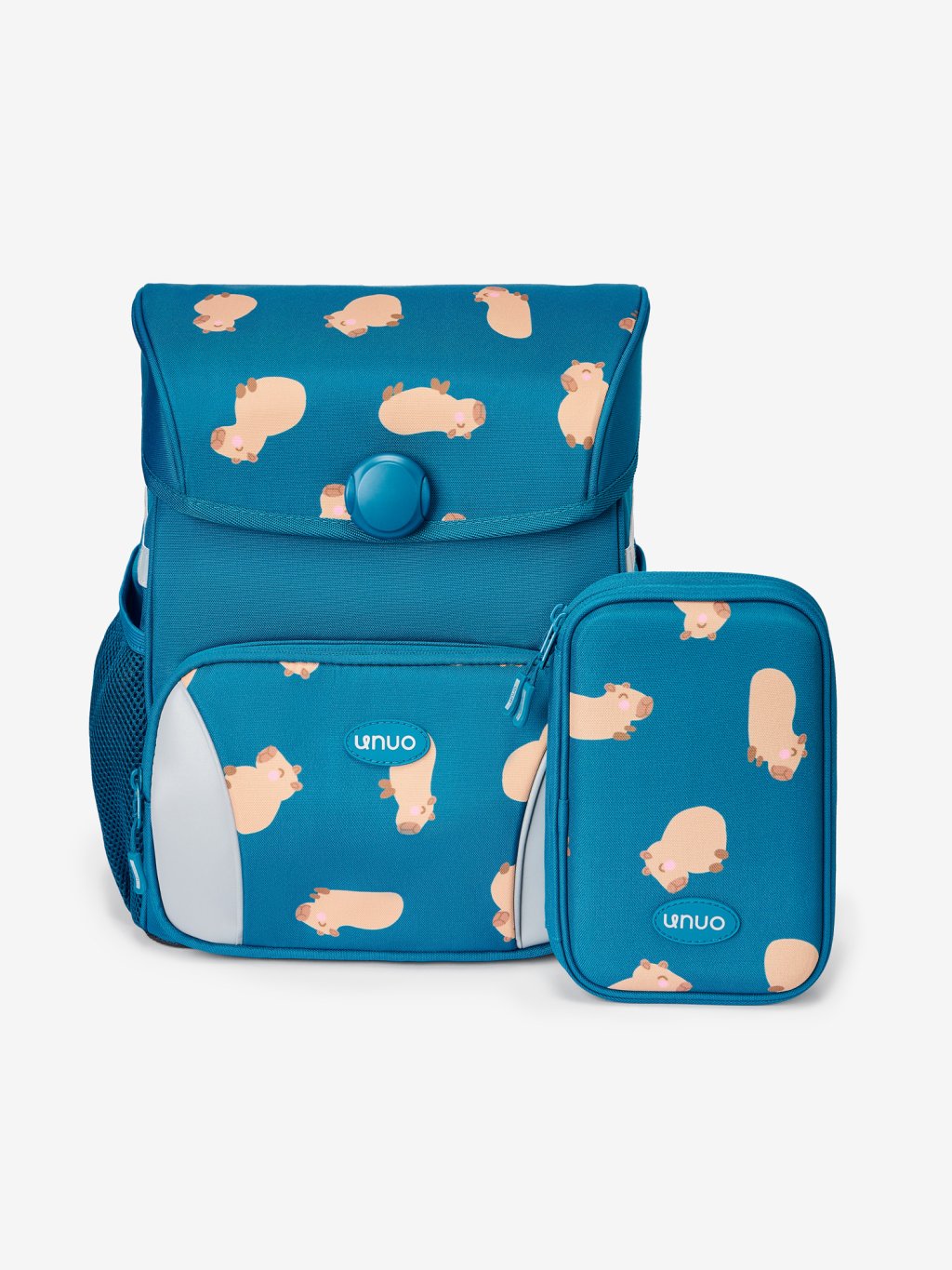 Ce sac à dos scolaire au design ludique offre beaucoup d'espace et un aménagement intérieur bien pensé. La grande poche comporte un compartiment séparé pour une meilleure organisation des manuels et des cahiers, et le couvercle dissimule des élastiques pratiques pour que tout ce qui est important ait sa place. La poche frontale est parfaite pour une boîte à en-cas, et un espace est prévu sur le côté pour une bouteille de boisson.