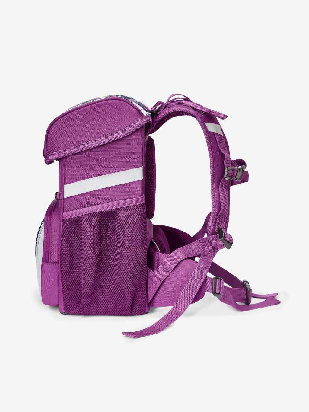 Ce sac à dos scolaire au design ludique offre beaucoup d'espace et un aménagement intérieur bien pensé. La grande poche comporte un compartiment séparé pour une meilleure organisation des manuels et des cahiers, et le couvercle dissimule des élastiques pratiques pour que tout ce qui est important ait sa place. La poche frontale est parfaite pour une boîte à en-cas, et un espace est prévu sur le côté pour une bouteille de boisson.