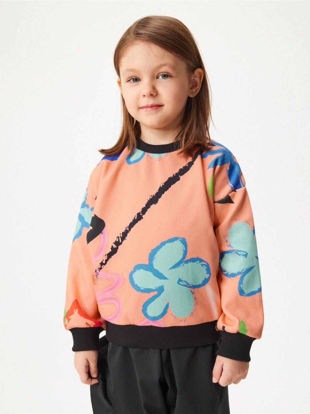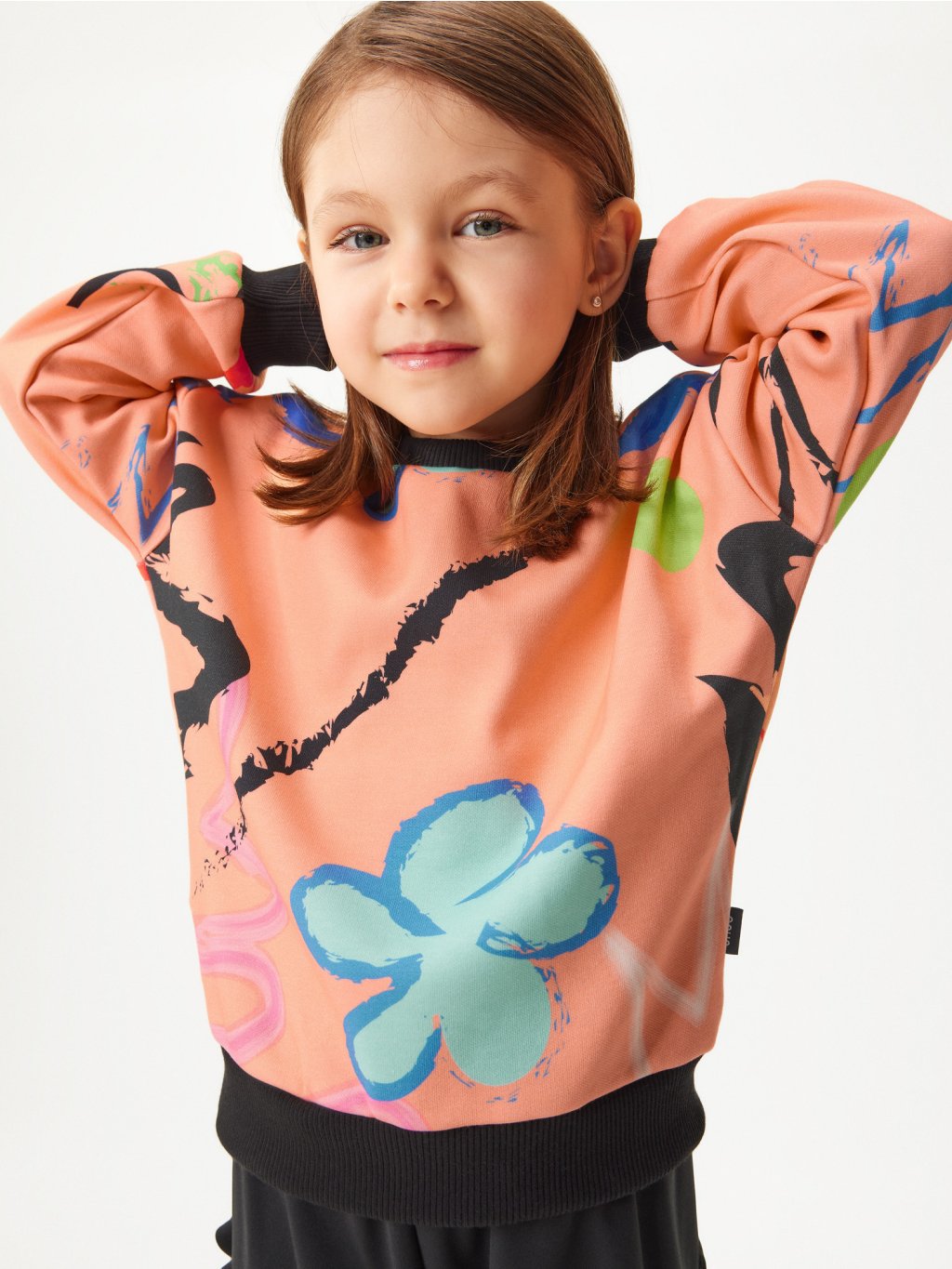 Sweat-shirt enfant en coton, Abricot, Fantaisie