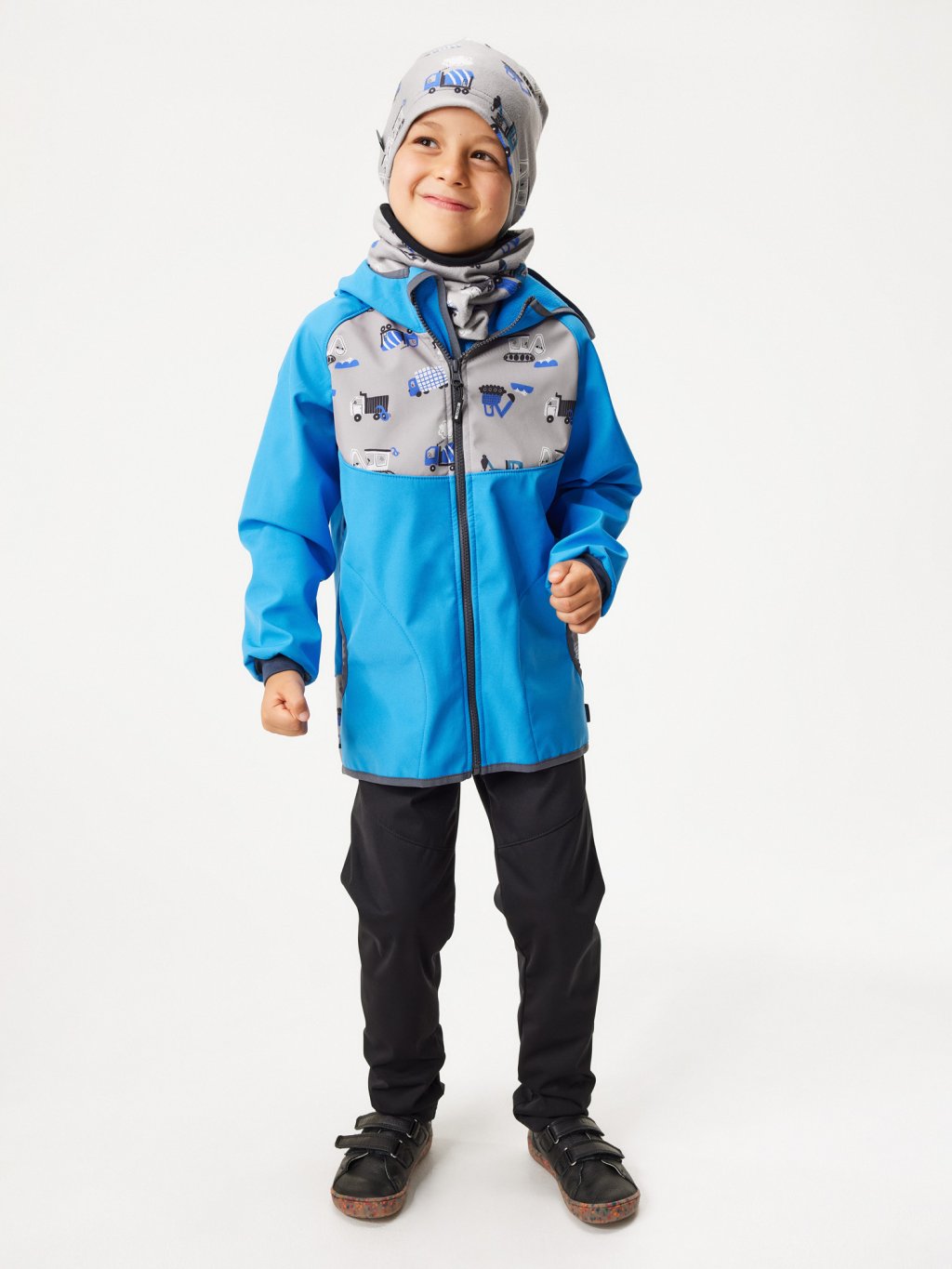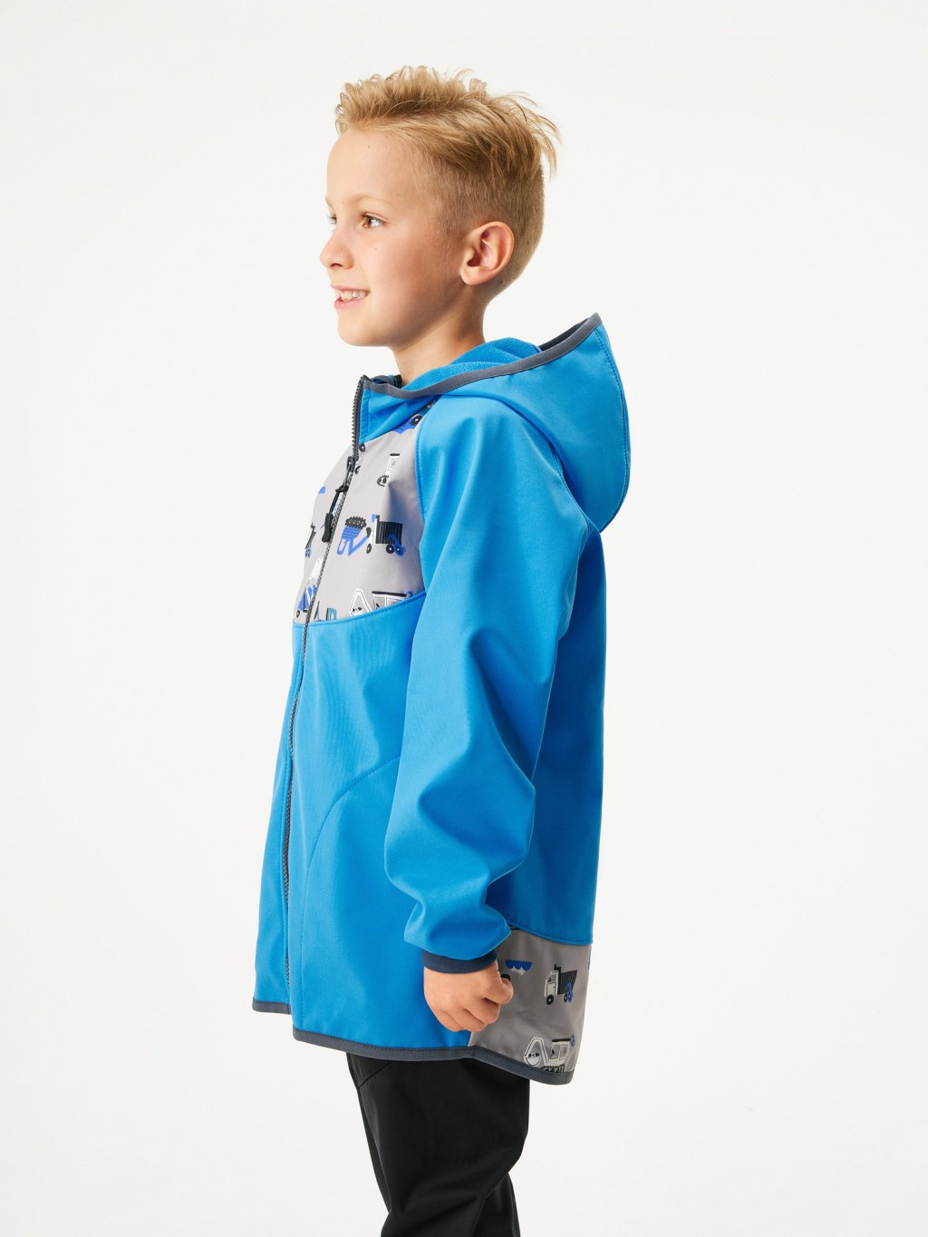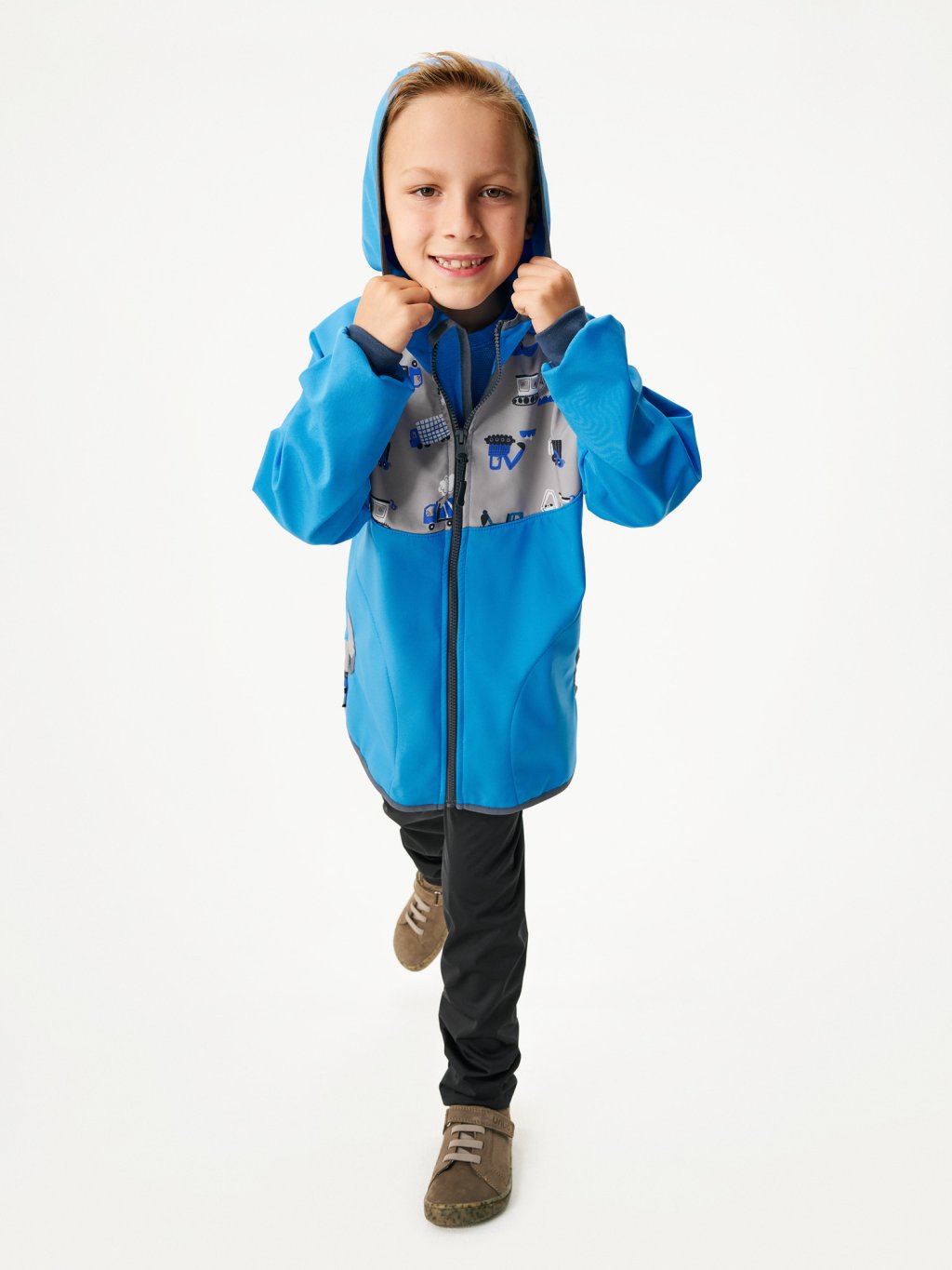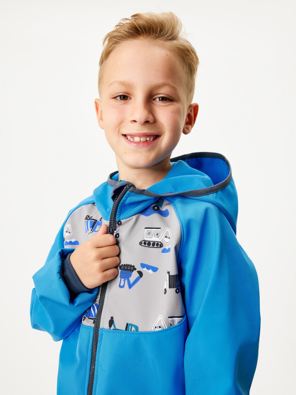 Veste enfant softshell doublé polaire Basic, Bleu, Tracteur pelleteuse