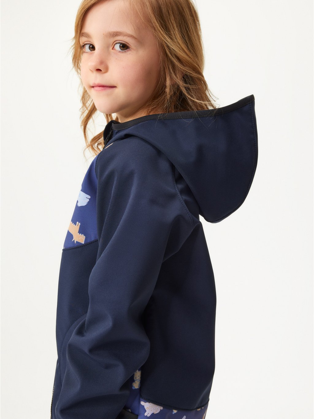 Veste enfant softshell doublé polaire Basic, Bleu foncé-noir, Chiens