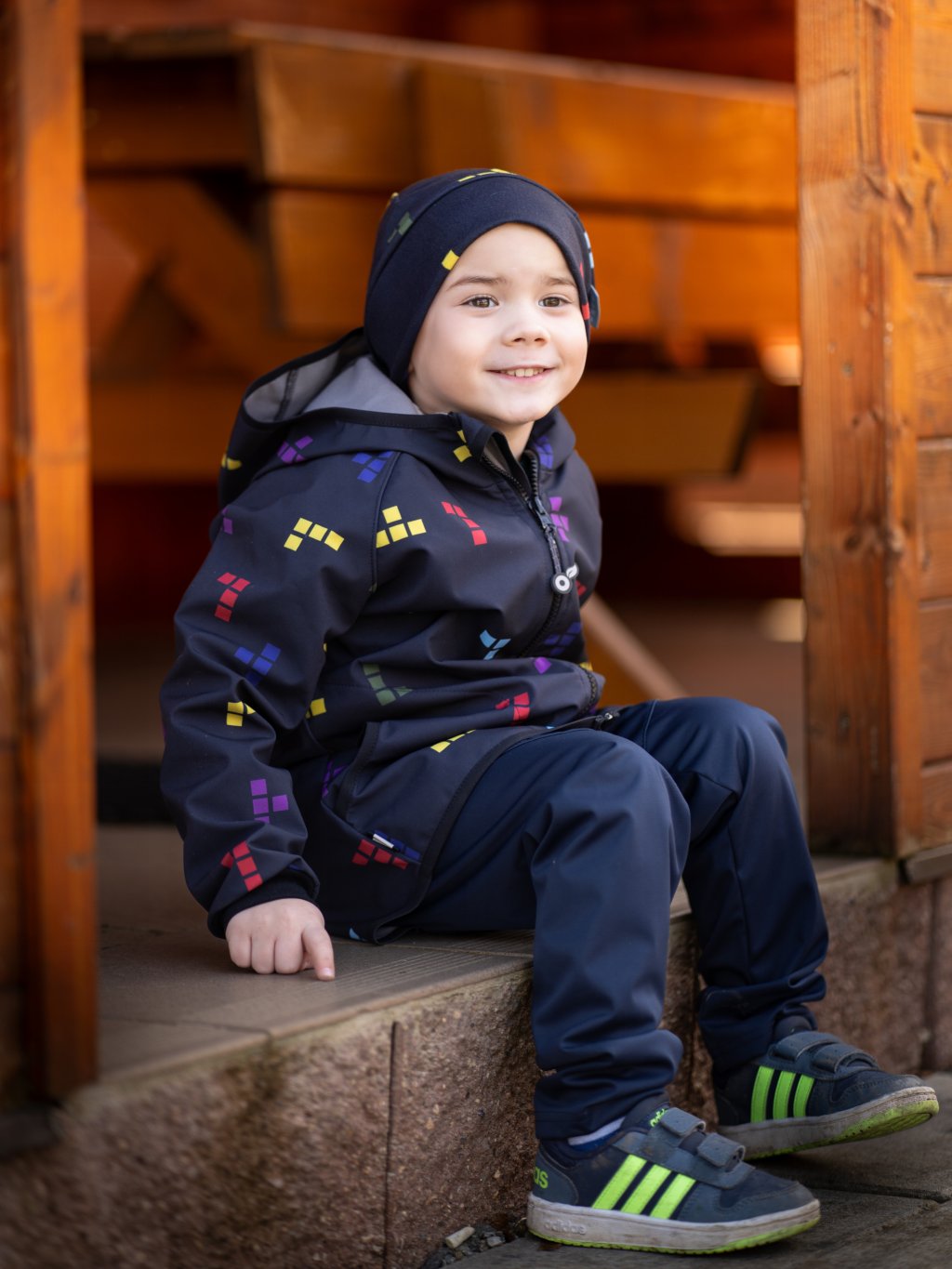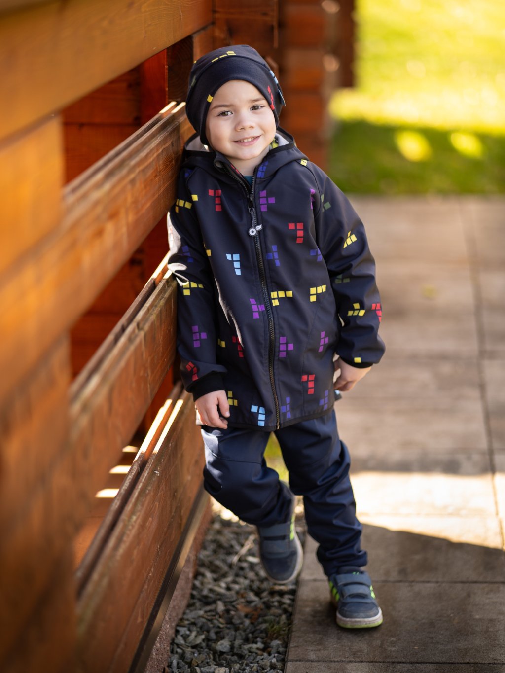 Des patchs dans les manches protegent contre les frottements et garantissent que la veste grandira littralement avec votre bb. Pour tous les enfants dont la passion pour l'aventure ne s'arrete jamais, nous vous proposons une veste softshell avec une coupe plus longue ! Avec cette veste, votre enfant peut se concentrer pleinement sur l'exploration de l'extrieur et ne pas perdre de temps a baisser la veste. La scurit avant tout, c'est pourquoi vous trouverez plusieurs lments rflchissants sur nos pieces. Qui a dit que le style extrieur devait etre ennuyeux ? Avec ce modele aux couleurs chatoyantes et a la coupe moderne, vos petits explorateurs et vous aurez l'air de stars sur le terrain d'aventure !
