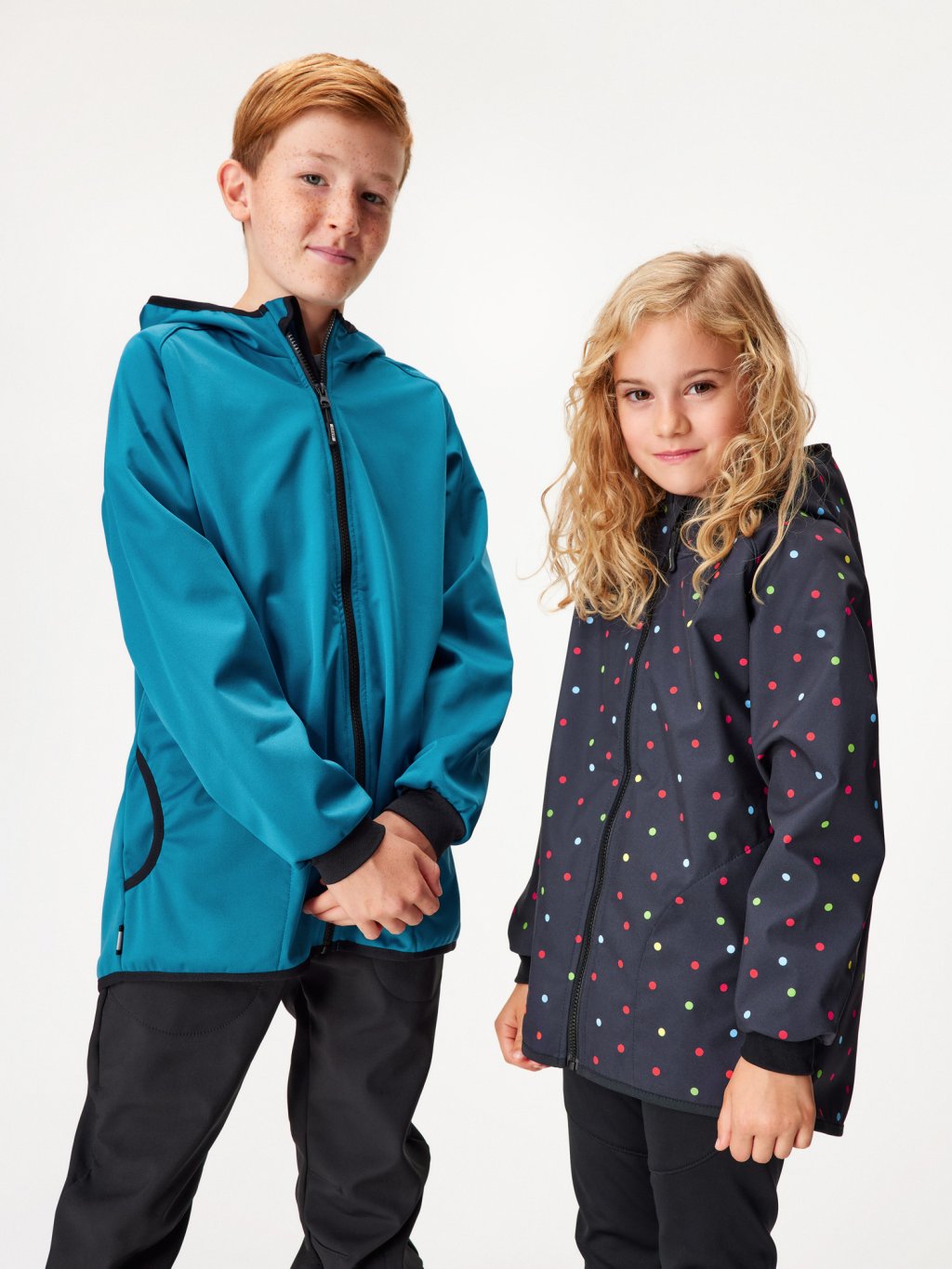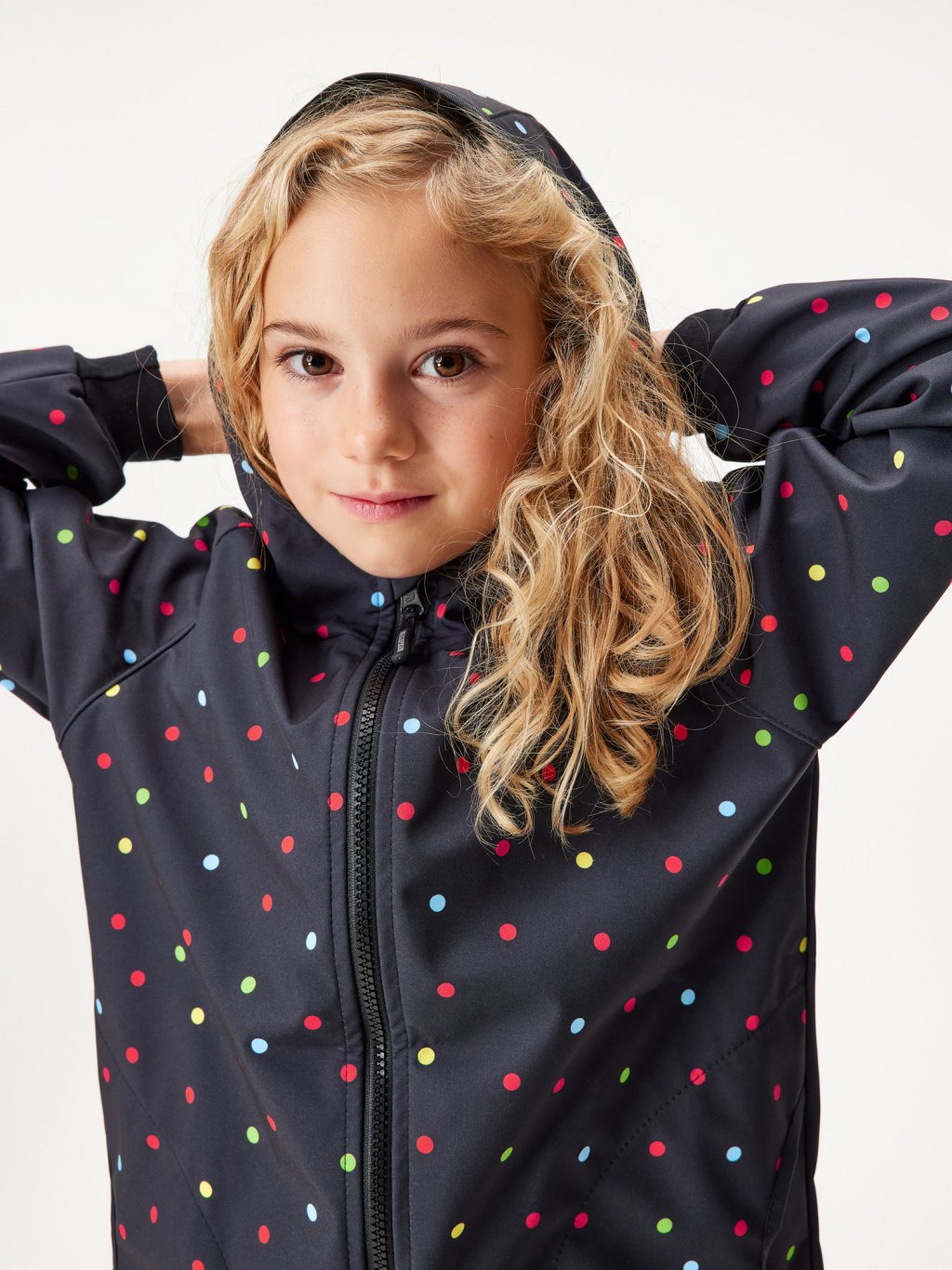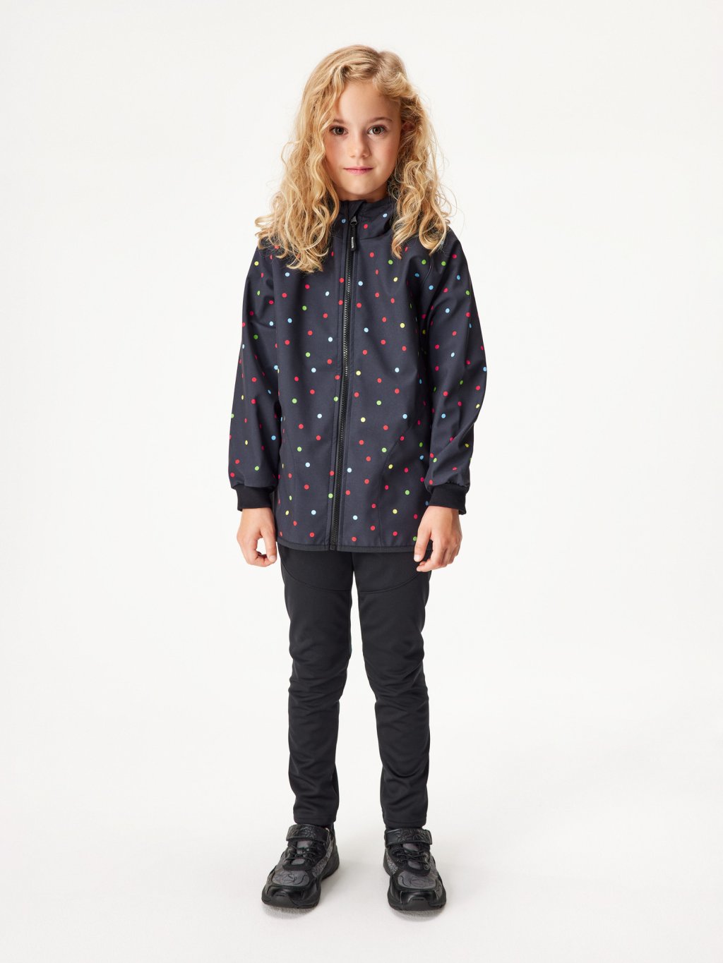 Veste enfant softshell doublé polaire Basic, Noir, Pointillé