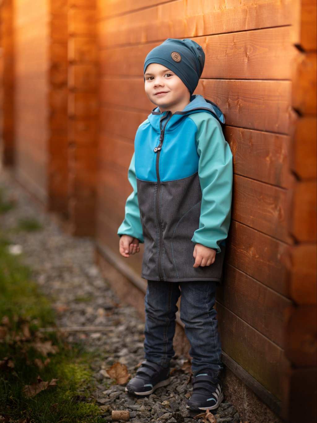 Veste enfant softshell doublé polaire Basic, Turquoise multicolore