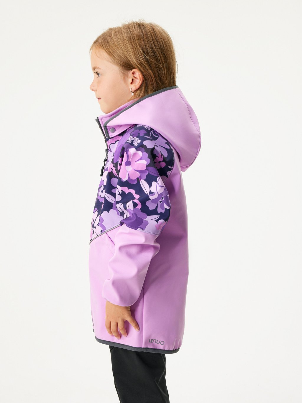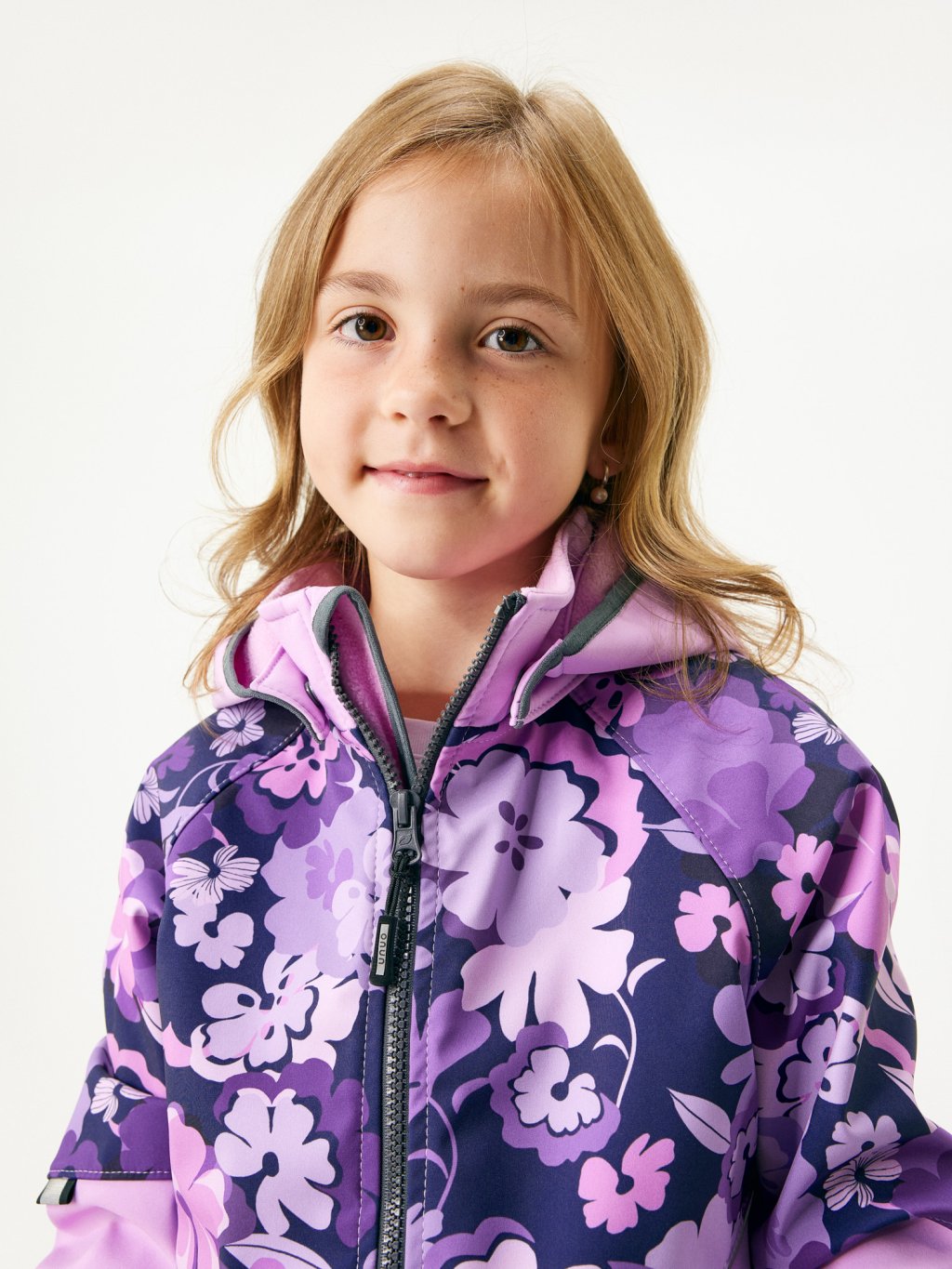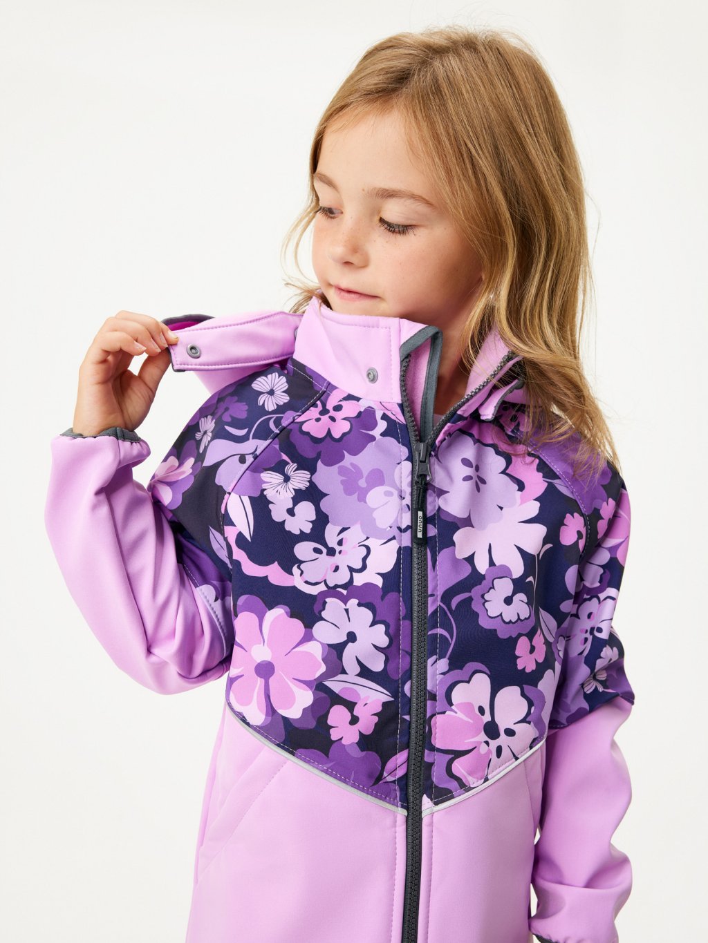 Veste enfant softshell doublé polaire Slim, Lila, Fleurs